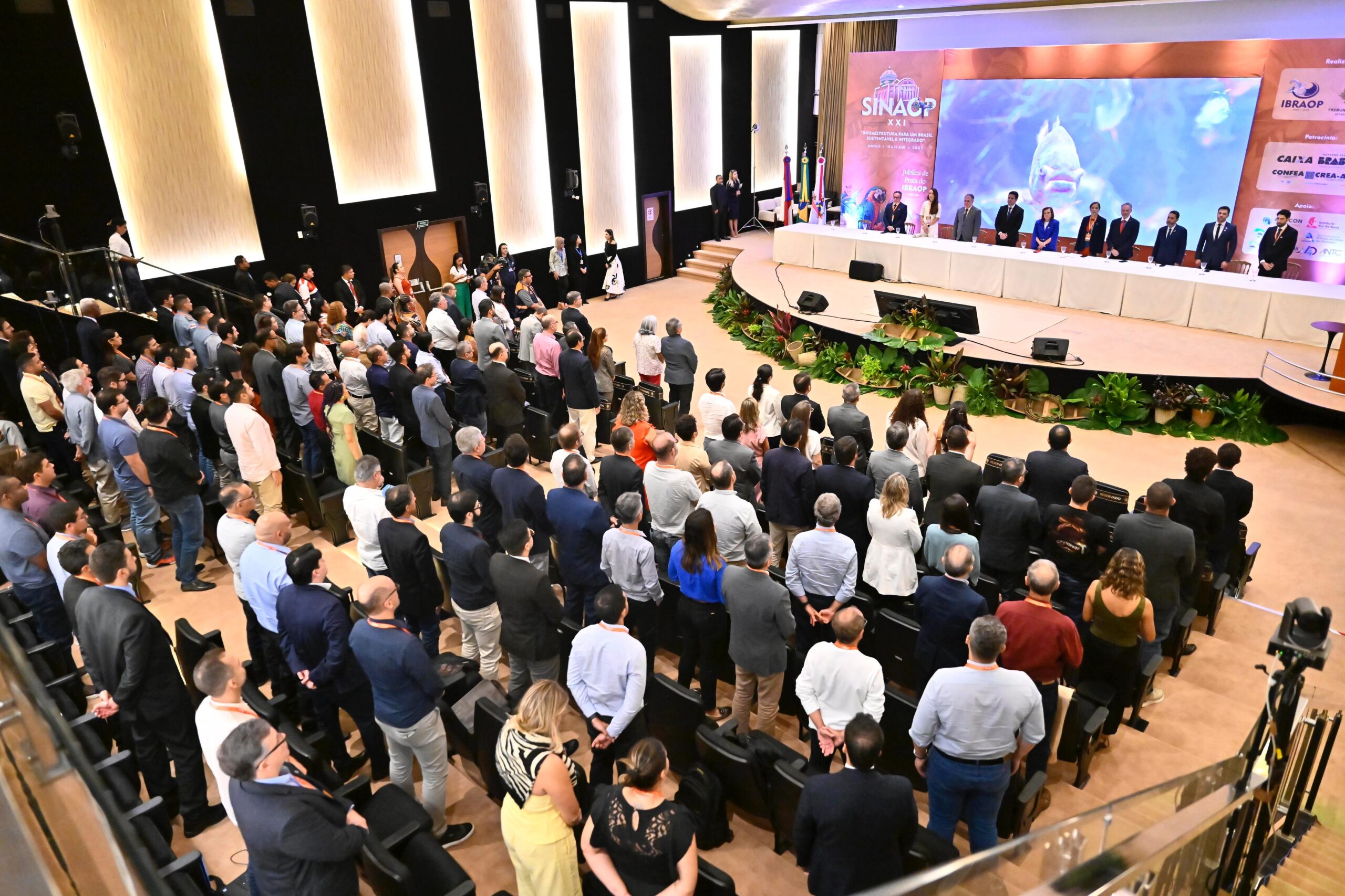 O Tribunal de Contas do Amazonas (TCE-AM) sediou, nesta segunda-feira (18), a abertura da 21ª edição do Simpósio Nacional de Auditoria de Obras Públicas (XXI SINAOP), que também celebra os 25 anos do Instituto Brasileiro de Auditoria de Obras Públicas (Ibraop). O auditório da Corte reuniu cerca de 300 participantes, entre especialistas, gestores, engenheiros e representantes de órgãos de controle de todo o país.