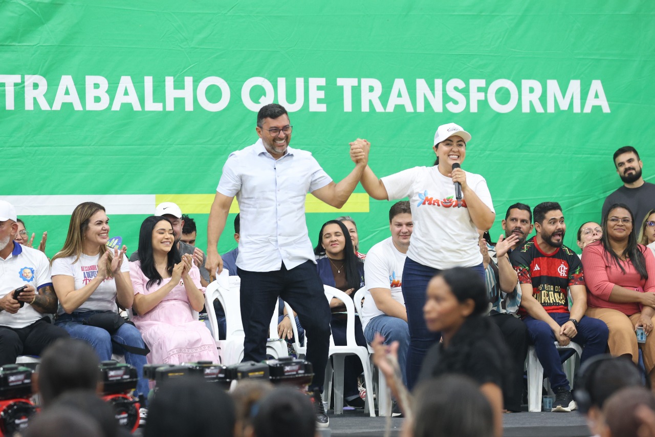 “Entregamos aqui cartões do Auxílio Estadual Permanente. Isso é importante porque dá dignidade para essas famílias em condição de vulnerabilidade, que garante uma cesta básica na mesa delas”, afirmou Wilson Lima, acompanhado dos deputados estaduais Alessandra Campêlo, Cabo Maciel e a prefeita de Maués, Macelly Veras.