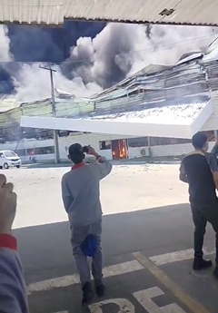 Veja vídeo: Incêndio de grandes proporções destrói empresa no Distrito Industrial de Manaus 05/08/2025