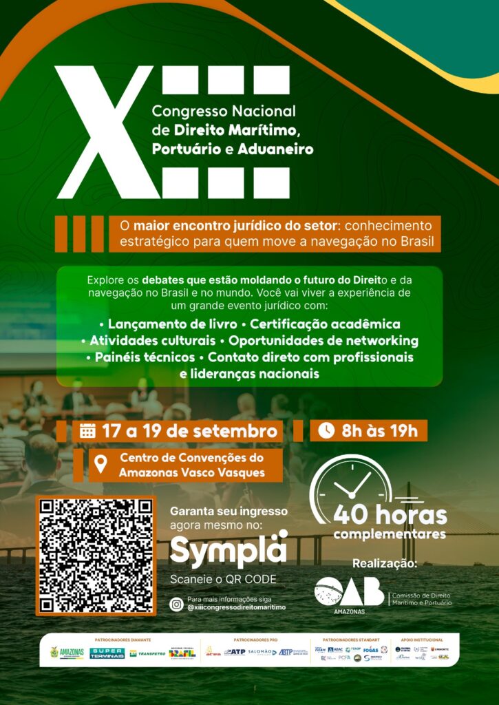Pela primeira vez, a Região Norte será sede do maior evento jurídico do setor marítimo: o XIII Congresso Nacional de Direito Marítimo, Portuário e Aduaneiro. O evento será realizado de 17 a 19 de setembro de 2025, no Centro de Convenções Vasco Vasques, em Manaus, com o tema: “Os desafios e oportunidades para a navegação em um cenário de mudanças climáticas.”